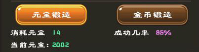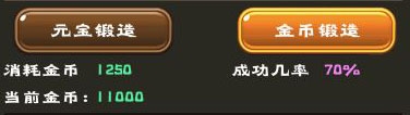 元宝锻造:消耗元宝进行锻造,进行高锻造等级时,成功率比金币锻造高;